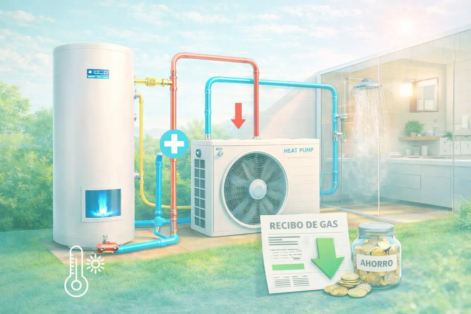 Complementamos los sistemas de calefacción de agua caliente sanitaria a gas con bombas de calor para generar ahorros en la cuenta de gas.